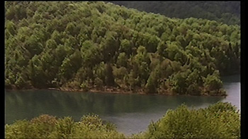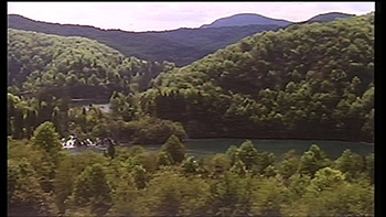Qui siamo lungo il sentiero che costeggia il lago Kozjak (Kozjak jezero). Le riprese sono state probabilmente effettuate dal punto più alto di un Hotel posto sulla collina della sponda opposta.
