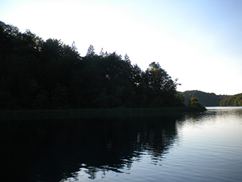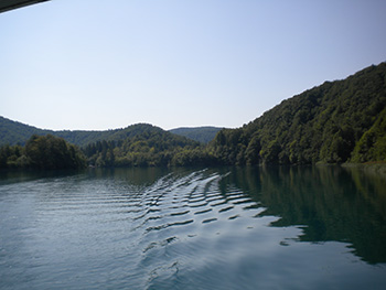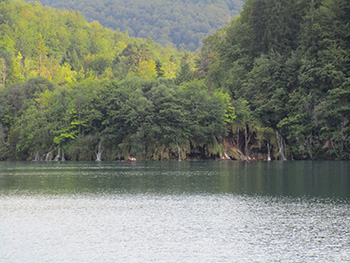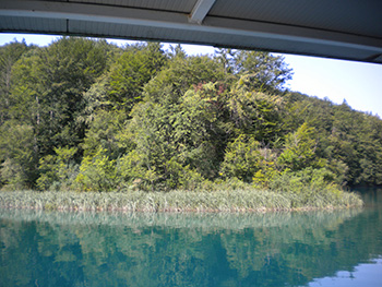 Le foto sono state da me scattate dal battello durante la traversata del lago Kozjak dal punto P2 al punto P3 (vedere le mappe). La location in prossimità della “piccola penisola” (foto a destra) presa questa direzione la troveremo alla nostra sinistra.